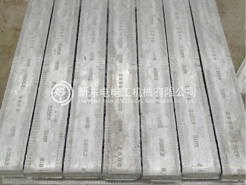 結晶輪上已凝固了的鑄錠由剔錠器剔出,并沿引橋人工送出,壓緊輪裝置將鋼帶緊壓在結晶輪上,以防鋁金屬液體外泄,導輪裝置用以調整和改變鋼帶的走向。鋼帶的張力可以通過漲緊輪裝置進行調節(jié),以保持一定的張力。為了便于鋁鑄錠脫模,連鑄機還備有鋼帶涂油裝置。由于整個過程都是連續(xù)進行的,因此可以得到大長度的鑄錠。